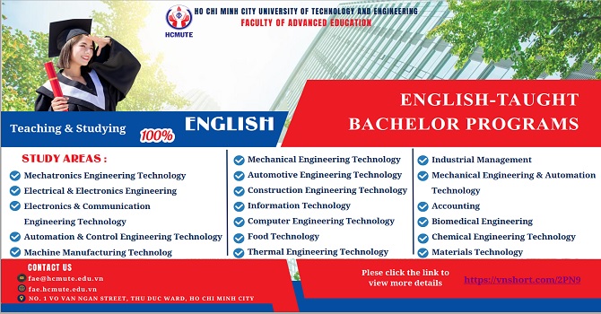 Copyright © 2014, Khoa Đào tạo Tiên tiến Trường Đại Học Công nghệ Kỹ Thuật TP. Hồ Chí Minh Địa chỉ: 01 Võ Văn Ngân, Phường Thủ Đức, Thành phố Hồ Chí Minh. Điện thoại: (+84 - 8) 3896 4921 - 7 221 223/8340 E-mail: fae@hcmute.edu.vn